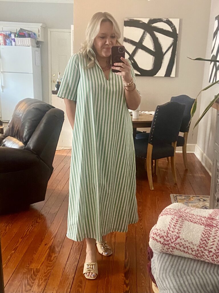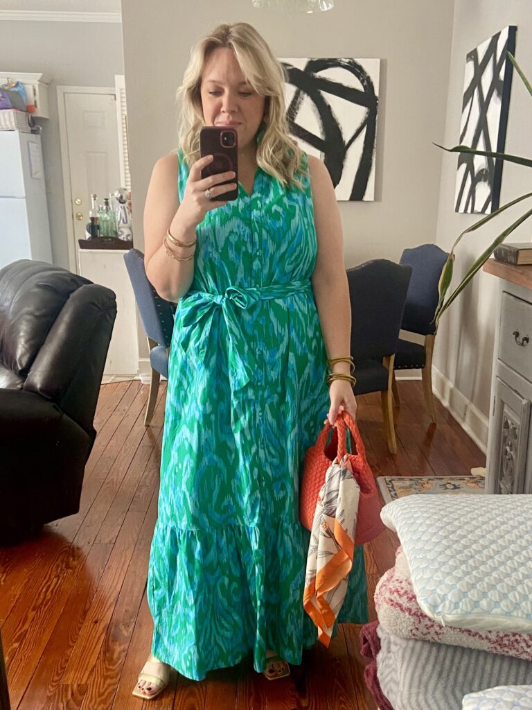 I feel pretty confident these dresses are gone from Not the Norm, but that’s no matter. There’s plenty of great dresses waiting to be scooped up. While this may be annoying to some, I love the idea that shopping small sometimes means that only a handful of people get to purchase certain styles. I got lucky enough to grab these two when I did. I’ve been reaching for both of them over and over. I’ve been gravitating to green a lot and statement collars, so both dresses were must haves. Who knows? Maybe these silouhettes will be available again in different colors or patters. Another one that is still available that I got a little later in the summer but wear all the time is this ikat maxi shirt dress. It’s a classic style with a bright, vibrant print. I just love it. (Shoes (tts) and Bag from the pics)