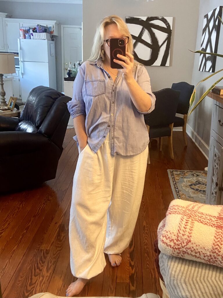 These delightfully comfy linen pants came to me from a friend who was sent the wrong item in an Old Navy order. She asked me if I wanted to try them, and I said sure. I then fell in love with harem pants. I wear them all the time around the house, and I’ve worn them out a few times. I do suggest sizing down as they’re oversized. If I buy another color, I’ll opt for the Large instead of the XL seen here. The wide waistband is insanely comfortable, and the ankle ties give the perfect harem pant look. I truly can’t get enough. You definitely need these.