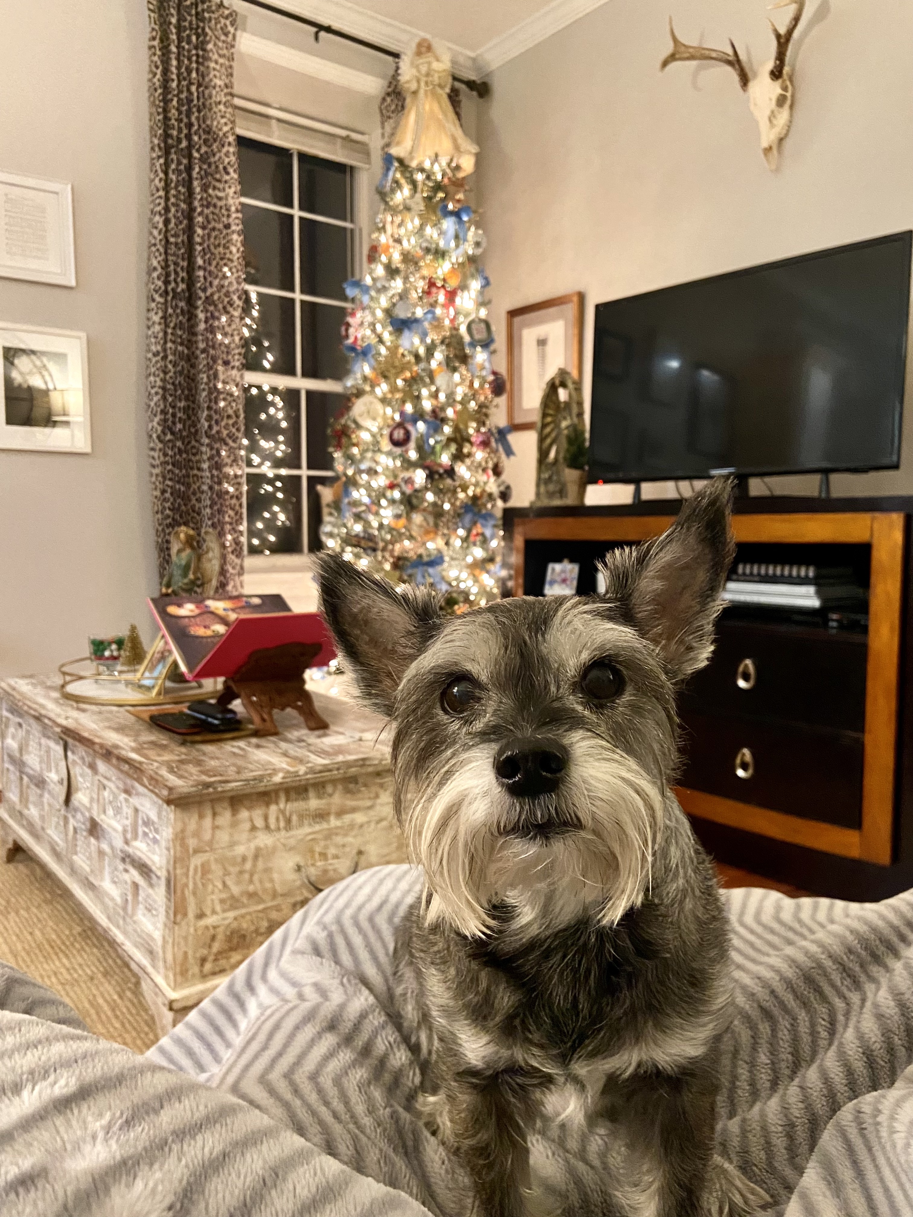 I’ve been thinking about her a lot this month. I know it’s because it’s October. Today is the one year anniversary of her death, and while it’s a little easier everyday, I still miss opening the bathroom door to her waiting for me. I still miss the cold morning cuddles, especially the ones in front of the Christmas tree. I miss her mischief. I miss her spunk and her bossiness. I really hope God lets us be reunited with our pets in heaven.
