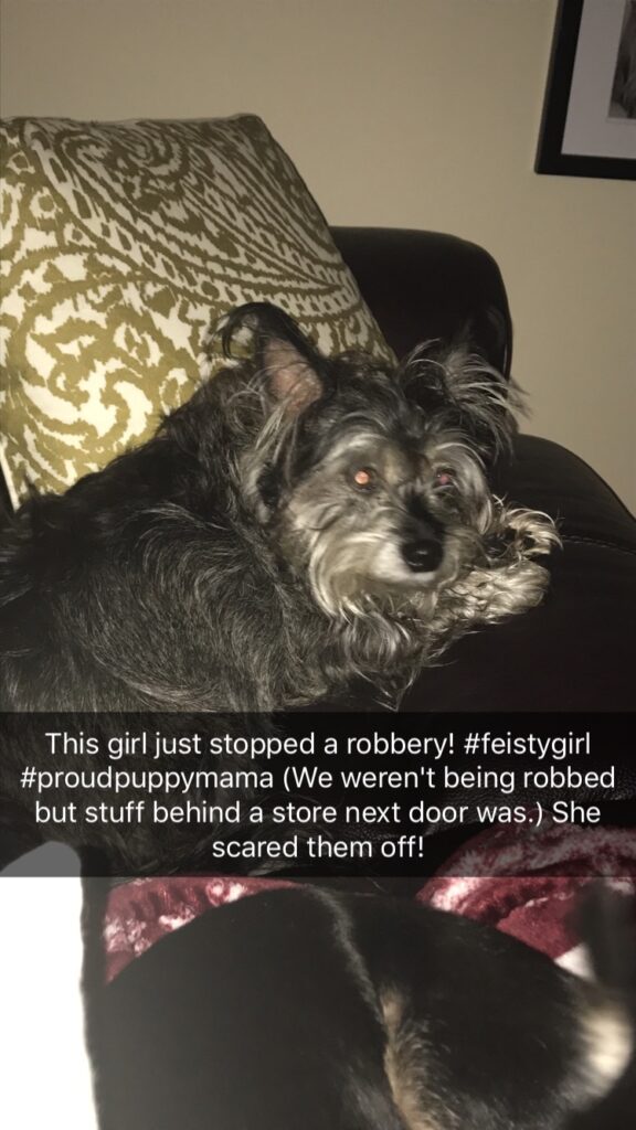 But she was also my shadow. I couldn’t go to the bathroom without her following me in or laying outside the door to wait for me. She wasn’t a cuddler unless it was cold out. She would sleep at the foot of the bed and would sometimes snuggle my feet. She was a fierce protector and didn’t let anyone, even Paul, mess with me. She even chased away a thief once.